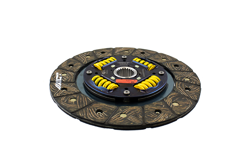 3000818 is a performance street disc and the most popular disc purchased. It features premium organic materials with high copper content for better heat transfer. Performance street discs allow for quicker shifting and smooth engagement. These discs feature a reduced marcel for faster shift action to complement ACT pressure plates. ACT spring-centered assemblies use bushings and cone springs similar to factory clutch discs. This creates frictional dampening, which improves clutch life and reduces noise. Quiet operation with increased strength and reliability.