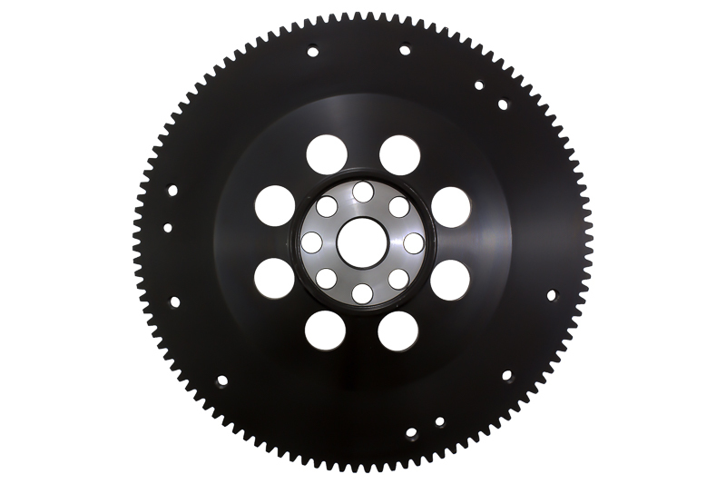 Noticeably improved engine response and acceleration, OE to mild gear rattle; Heat-treated forging for strength and toughness, induction-hardened ring gears for maximum life; One piece construction allows less opportunity for failure and provides uniform efficient heat transfer from the clutch disc. No more warped inserts or loose ring gears; Recommended for street and race use; Forged, CNC machined and dynamically computer balanced for smooth high RPM reliability