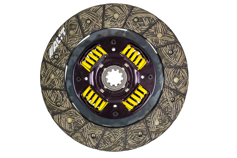 3000801 is a performance street disc and the most popular disc purchased. It features premium organic materials with high copper content for better heat transfer. Performance street discs allow for quicker shifting and smooth engagement. These discs feature a reduced marcel for faster shift action to complement ACT pressure plates. ACT spring-centered assemblies use bushings and cone springs similar to factory clutch discs. This creates frictional dampening, which improves clutch life and reduces noise. Quiet operation with increased strength and reliability.