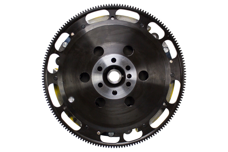 T3R-G01 race, twin disc kit offers twice the number of disc surfaces for better wear, heat capacity and long life compared to single disc kits. These kits use a proprietary Positive Lift Floater System design, which results in quiet operation with no floater rattle and no posts to wear. ACT twin disc kits undergo an exclusive four-stage, heat-treating process on all diaphragms. The ACT twin disc features the ability to adjust for disc wear and provides equal disengagement for discs. ACT’s 6-pad rigid race discs are made with high quality, ceramic friction materials. The chrome-moly hub is heat-treated for strength and durability. The lightweight, rigid design allows for quicker shifts and trouble-free service. All ACT twin disc kits include a CNC-machined and dynamically balanced flywheel to ensure trouble-free installation and operation. ACT twin disc kits include a pressure plate, two discs, a floater, flywheel and alignment tool. Some kits may include a pilot bearing and release bearing.