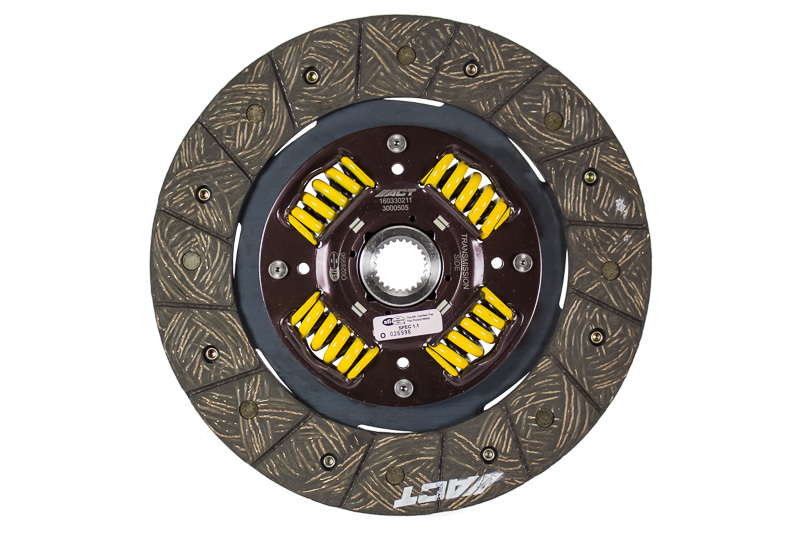 3000505 is a performance street disc and the most popular disc purchased. It features premium organic materials with high copper content for better heat transfer. Performance street discs allow for quicker shifting and smooth engagement. These discs feature a reduced marcel for faster shift action to complement ACT pressure plates. ACT spring-centered assemblies use bushings and cone springs similar to factory clutch discs. This creates frictional dampening, which improves clutch life and reduces noise. Quiet operation with increased strength and reliability.