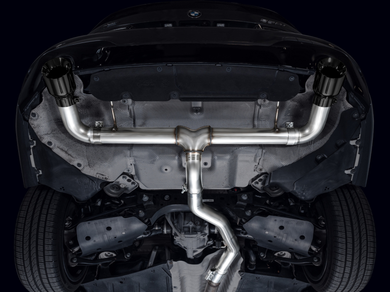 Enhance your BMW’s exhaust sound and performance with the AWE Tuning Diamond Black Track Edition Axle-Back Exhaust, specifically designed for 2019-2023 BMW 330i and 2021-2023 BMW 430i models. Crafted from CNC mandrel-bent 3-inch T304L stainless steel with a .065-inch wall thickness, this exhaust system ensures durability and maximum flow. Its straight-through, filterless design maximizes volume and performance while maintaining full compliance with 50-state emissions standards. Installation is straightforward, utilizing four bolt-on connections at the factory cut point, and includes a factory clamp for easy reversion to stock configuration if necessary. The dual 4.5-inch slash-cut tips in a sleek diamond black finish provide a refined aesthetic and aggressive sound profile. The system is engineered for both coupe and sedan variants, guaranteeing perfect fitment and seamless integration with your vehicle’s existing systems. Additionally, it features AWE’s No CEL Guarantee and includes valve simulator brackets to optimize exhaust flow and sound. This axle-back exhaust not only elevates the auditory experience but also contributes to weight reduction and aesthetic enhancement, making it an ideal upgrade for enthusiasts seeking a bold, performance-oriented exhaust note. Suitable for drivers who want a more pronounced sound from their 430i or a more spirited exhaust note from their 330i, this system represents a high-quality, durable, and emissions-compliant upgrade that enhances both the look and sound of your BMW. Backed by a lifetime warranty, the AWE Track Edition is a reliable choice for those seeking improved exhaust flow and a more aggressive driving experience without sacrificing legal compliance.