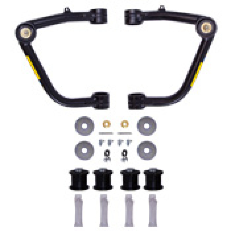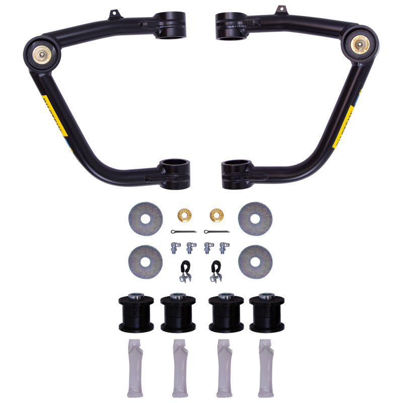 Upgrade your truck’s suspension with the Bilstein 51-322335 Control Arm Kit, designed specifically for 2019-2020 Chevrolet Silverado 1500 and GMC Sierra 1500 models. Crafted from durable black powder-coated 4130 chromoly steel, these tubular control arms deliver a significant improvement in ride quality and durability. The kit includes a pair of control arms that correct caster alignment, enhancing straight-line stability, especially when running lifted suspensions. Improved pivot angles in these arms increase wheel travel and reduce stress on joints, contributing to better handling and longevity of suspension components. The heavy-duty ball joints and greasable polyurethane bushings ensure smooth operation and minimal maintenance, making them ideal for demanding off-road conditions or daily driving. Installation is straightforward, as the kit comes with detailed instructions and all necessary hardware, and it is compatible with all Bilstein shocks and coilover kits, making it a versatile upgrade for your vehicle. These components are designed to be a direct fit replacement for factory upper control arms, ensuring a seamless upgrade that improves performance and stability. Whether you’re customizing your truck for off-road adventures or enhancing on-road handling, these control arms provide the strength and precision needed for optimal suspension performance.