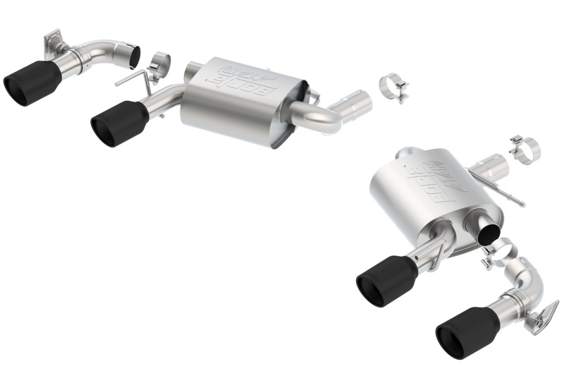 Enhance your Chevrolet Camaro SS with the Borla ATAK rear section exhaust system, designed specifically for models from 2016 to 2024. This system features an aggressive ATAK sound signature that delivers a deep, powerful exhaust note without drone inside the vehicle, providing an exhilarating driving experience. Crafted with precision, the system includes dual 4-inch T-304 stainless steel tips finished in durable black, ensuring both performance and style. The system integrates seamlessly with vehicles equipped with Dual Tips and Dual Mode Exhaust (NPP) valves, allowing drivers to switch between modes for optimal sound and performance. The NPP valves are fully functional, enabling you to customize your exhaust tone at the touch of a button. When combined with Borla’s X-Pipe and Mid-Pipes (part numbers 60607 or 60610), this system can be expanded into a full Cat-Back setup, although the X-Pipes are not compatible with convertibles. Each Borla exhaust system is built from premium T-304 stainless steel, offering superior durability over lower-grade alternatives, with ultra-smooth mandrel bends to maximize exhaust flow and power. The system is manufactured using CNC technology for precise fitment, and it is backed by Borla’s Million-Mile Warranty, underscoring its quality and reliability. Designed for enthusiasts seeking both power and sound, this system enhances throttle response, increases horsepower, and delivers the distinct Borla sound that motorsport fans admire. Whether you prefer a polished stainless steel or carbon fiber tips, Borla offers options to match your aesthetic. This exhaust system is not CARB approved but complies with other environmental standards, making it suitable for most driving conditions. Easy to install and built to last, the Borla ATAK rear section exhaust is the perfect upgrade for Camaro owners looking to boost performance and sound.