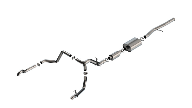 Enhance your 2022-2023 Chevrolet Silverado 1500 ZR2 or GMC Sierra 1500 AT4X with the Borla S-Type Cat-Back exhaust system. Crafted from premium T-304 stainless steel, this system offers exceptional durability and performance, featuring ultra-smooth mandrel bends that maximize exhaust flow for increased horsepower and fuel efficiency. The 3.5-inch diameter pipes with dual 2.75-inch turn-down tail pipes deliver a deep, aggressive sound characteristic of Borla’s renowned S-Type tone, providing a satisfying auditory experience without interior drone. The system’s precision CNC manufacturing ensures a perfect fit and seamless installation, making it a reliable upgrade for your truck. The Borla S-Type system is compatible with optional Polyphonic Harmonizer 60680 to elevate the sound level to ATAK, producing a louder, more intense exhaust note favored by enthusiasts. This system is designed specifically for the 6.2L V8 engine, with a crew cab configuration and short bed, and is built to withstand harsh conditions while maintaining peak performance. Borla backs this exhaust with a Million-Mile Warranty, reflecting their commitment to quality and customer satisfaction. Whether you seek a boost in power, a distinctive sound, or a combination of both, this Cat-Back system offers a premium solution that transforms your driving experience. Simple bolt-on installation allows you to enjoy the benefits immediately, with no need for additional modifications. Elevate your truck’s sound and performance with Borla, the most trusted name in exhaust systems worldwide.