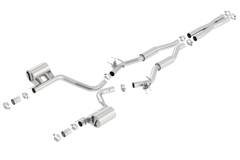 Enhance your Dodge Challenger’s performance and sound with the Borla S-Type Cat-Back Exhaust System, designed specifically for 2015-2022 models equipped with the 6.4L V8 Hemi engine. Crafted from premium T-304 stainless steel, this system features patented straight-through and multi-core technology that maximizes exhaust flow, unleashing hidden horsepower and delivering a distinctive, aggressive Borla Sound of Power. The inclusion of a Merge X-Pipe further improves exhaust velocity for increased power output, making your driving experience more exhilarating. This system is engineered with ultra-smooth mandrel bends and precision CNC manufacturing to ensure an accurate fit and optimal performance. The Borla system is equipped with active valve simulators that eliminate the MDS (multi-displacement system) valves, preventing warning lights from illuminating on your dashboard while maintaining maximum flow at all times. The system produces the classic S-Type sound with no drone inside the vehicle, providing a refined yet aggressive exhaust note that enthusiasts love. Please note that tips are not included; it is designed to use your factory bezel and valance for a seamless appearance. Backed by Borla’s Million-Mile Warranty, this exhaust system is a durable upgrade that combines performance, durability, and a signature sound respected by car enthusiasts worldwide. Whether you seek increased horsepower, improved fuel economy, or a more assertive exhaust note, this system offers a comprehensive solution for Dodge Challenger owners seeking quality and performance.