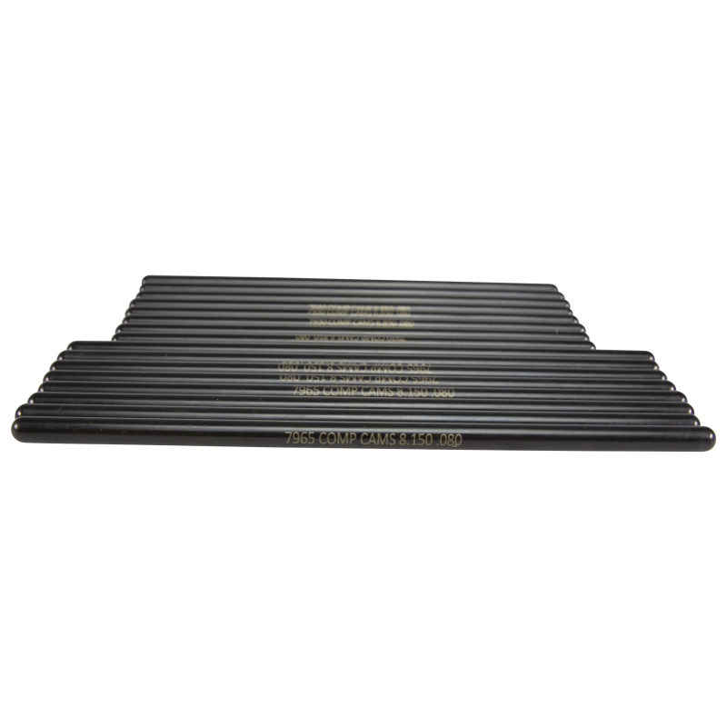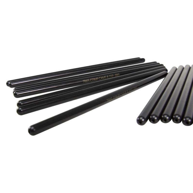 Upgrade your late-model Dodge HEMI engine with the COMP Cams Part Number 8721-16 Hi-Tech Pushrod Set, designed specifically for 2003-2008 5.7L and 2005-2010 6.1L and 6.4L HEMI applications. Crafted from high-quality .080-inch wall chromemoly tubing, these one-piece pushrods are cryo-treated to ensure extended durability and resistance to wear. The precision-formed and reinforced ball ends provide optimal preload and consistent performance, making them an excellent choice for high-performance camshaft upgrades.