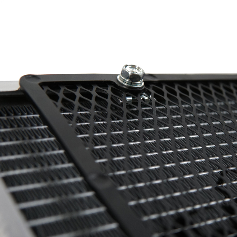 The #8187 is designed as a direct replacement for OEM auxiliary radiators, allowing for a straightforward “Drop-In Fit” installation in the factory location with minimal modifications required. CNC-machined mounting brackets and OEM-style quick connect inlet/outlet fittings ensure a secure and seamless integration. Each radiator is individually pressure tested for leaks, guaranteeing reliability and longevity. Protecting your investment, the radiator includes a detachable rock guard to prevent debris build-up and core punctures, a feature absent in many OEM units.