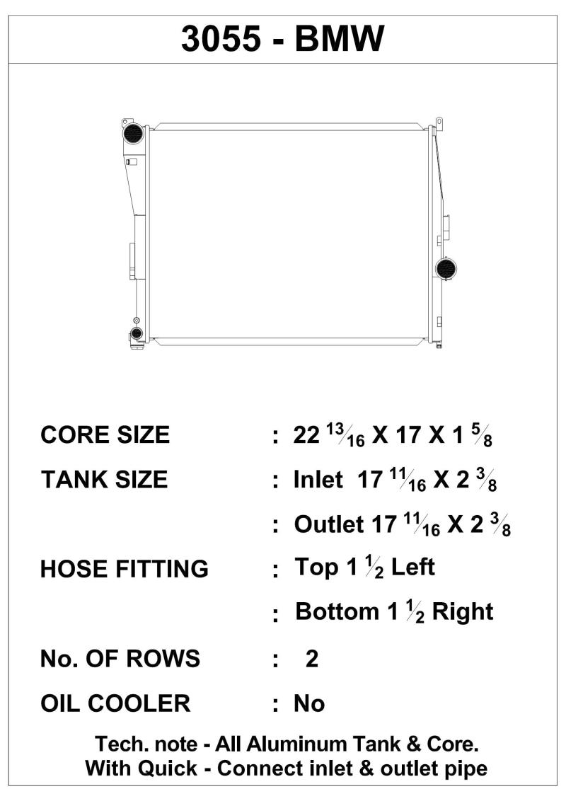 Enhance your BMW’s cooling efficiency with the CSF High-Performance All-Aluminum Radiator, specifically designed for models including the 2000-2004 BMW 3-Series and Z4. Built with over five decades of expertise, CSF radiators are engineered to deliver superior heat dissipation whether you’re driving on the street or competing at the track. This radiator features a robust 2-Row core utilizing CSF’s exclusive B-Tube Technology, which employs specially shaped “B”-shaped tubes that are brazed over seams for enhanced strength and thermal performance. The unique tube design allows for a 15% increase in heat transfer surface area compared to traditional oval tubes, resulting in improved cooling capacity and efficiency. The dual liquid laminar flow enabled by the B-tubes optimizes coolant flow through the radiator, further enhancing heat rejection. The core is complemented by ultra-efficient multi-louvered fins that are meticulously aligned to maximize airflow and heat dissipation. Each fin is engineered with a fin height of 6.5mm and designed to provide maximum contact surface area, ensuring optimal thermal transfer. The radiator is a direct drop-in replacement that installs seamlessly into the OEM location without modifications, accepting all factory components such as quick-connect hoses, mounting brackets, and the fan shroud. CNC-machined brackets and fittings guarantee a precise fit and durability, while the satin finish offers a sleek, professional appearance. The inclusion of a smooth all-aluminum race-style drain plug simplifies maintenance and fluid drainage. This radiator is rated for high-performance applications and is suitable for high horsepower builds or motorsports environments where reliable cooling performance is critical. Designed for easy installation, it provides an upgrade over stock radiators by combining advanced materials and innovative technology to ensure your engine runs cooler and more efficiently under demanding conditions.