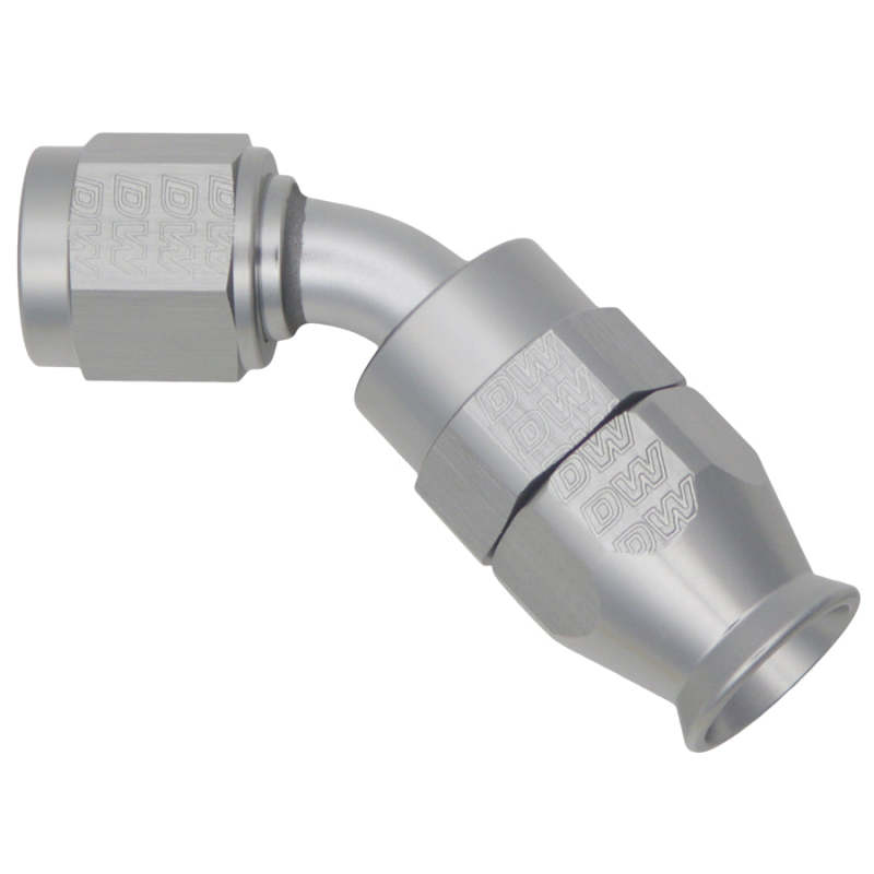 The DeatschWerks 6AN Female Swivel 45-Degree Hose End with PTFE lining is a high-quality, durable component designed for advanced automotive fuel systems. Crafted from anodized titanium, this hose end offers excellent corrosion resistance and a lightweight profile, making it suitable for demanding performance applications. The swivel design ensures ease of installation and secure connections, reducing installation time and potential leaks. The included olive insert provides a reliable seal for a tight fit, maintaining optimal fuel flow and pressure integrity. Ideal for custom fuel line setups, this hose end is compatible with high-performance fuels and can withstand extreme conditions encountered in racing and street performance vehicles. Manufactured by DeatschWerks, a trusted name in high-performance fuel system components since 2004, this part exemplifies precision engineering and quality assurance, ensuring long-lasting reliability in your fuel delivery system. Whether upgrading existing lines or designing a new fuel system, this 45-degree PTFE hose end is an essential component for enthusiasts seeking performance and durability. The product is suitable for various automotive applications, including sport compact, modern muscle, euro, and powersport vehicles, reflecting DeatschWerks’ comprehensive approach to fuel system innovation.