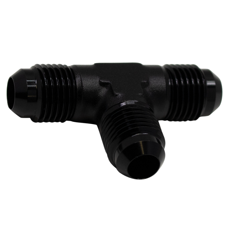 The DeatschWerks 6AN Male Flare Triple Tee Fitting (Part Number: 6-02-0721-B) is designed for high-performance automotive applications where durable and reliable fluid connections are essential. Crafted with precision, this fitting features an anodized matte black finish that provides corrosion resistance and a sleek appearance. Ideal for fuel, oil, or coolant systems, it ensures secure connections with minimal risk of leaks and disconnections during operation. The triple tee configuration allows for seamless splitting or merging of fluid lines, enhancing system versatility and efficiency. Constructed from high-quality materials, it offers excellent durability under demanding conditions, making it suitable for racing, street performance, or custom builds. Easy to install, this fitting is compatible with existing 6AN hoses and fittings, simplifying upgrades or repairs in your automotive setup. Trust DeatschWerks for precision engineering and quality craftsmanship in every component.