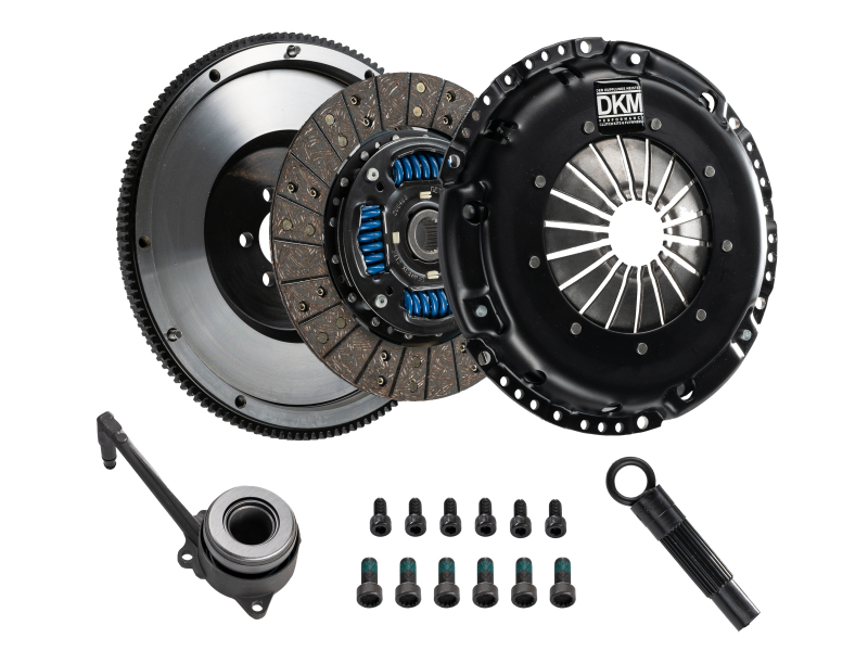 The DKM Clutch MB-004-040 is a high-performance clutch kit designed specifically for Volkswagen models such as the Beetle, Golf, and Audi TT from the early 2000s. Featuring an organic disc construction, this clutch kit is ideal for drivers who engage in aggressive street driving or participate in moderate track activities. It provides an impressive up to 80% increase in torque capacity, ensuring reliable power transfer during demanding driving conditions. The included steel flywheel enhances durability and helps maintain consistent engagement, making it suitable for spirited driving experiences.