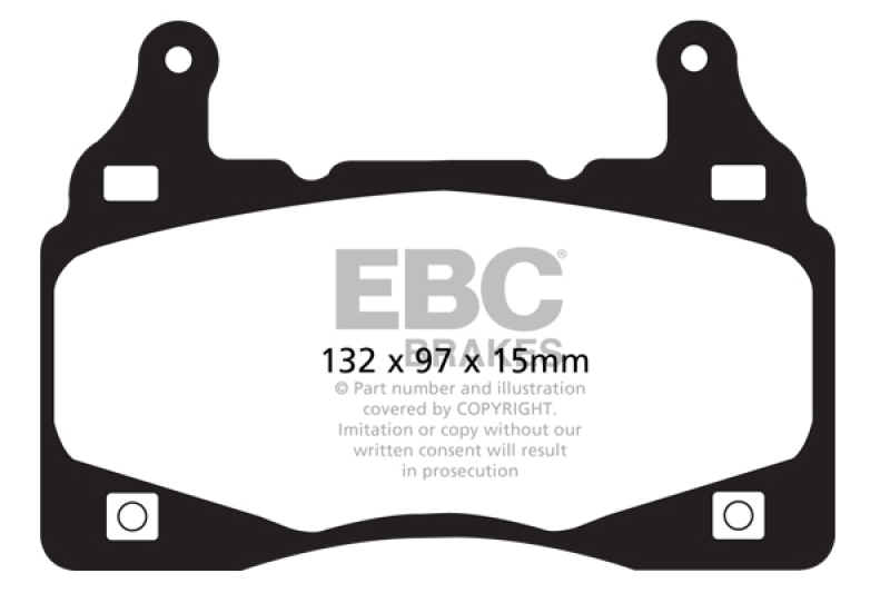 The EBC Yellowstuff Part Number DP41895R are high-performance front brake pads designed specifically for Chevrolet Camaro models from 2011 to 2015. Crafted with an aramid fiber-based compound, these brake pads deliver exceptional braking performance right from cold conditions, making them suitable for both street driving and track use. They are engineered to provide increased braking effectiveness during hard driving without requiring warm-up, ensuring reliable stopping power in various driving scenarios. The Yellowstuff pads are known for their high friction characteristics, enhancing high-speed stopping and overall brake responsiveness. Their vented design aids in heat dissipation, helping maintain consistent performance during extended or aggressive driving sessions. These pads are rotor-friendly and have been proven in competitive environments such as the Swedish Camaro Cup, UK Mazda MX5 race series, and testing with over 500 drivers across major motorsport organizations like SCCA and NASA. The pads’ durability and performance make them ideal for drivers seeking a reliable, high-friction brake solution that works effectively on the street and at the track. The DP41895R pads are a popular choice among racing enthusiasts and everyday drivers who demand top-tier braking performance without sacrificing street usability. They come with a FMSI pad number D1474 and are compatible with vehicles up to 2,000 pounds or 200 horsepower, ensuring versatility across various performance levels. Whether you’re on the highway or participating in spirited track days, these Yellowstuff brake pads offer consistent, fade-free braking power combined with a durable construction to withstand demanding conditions.