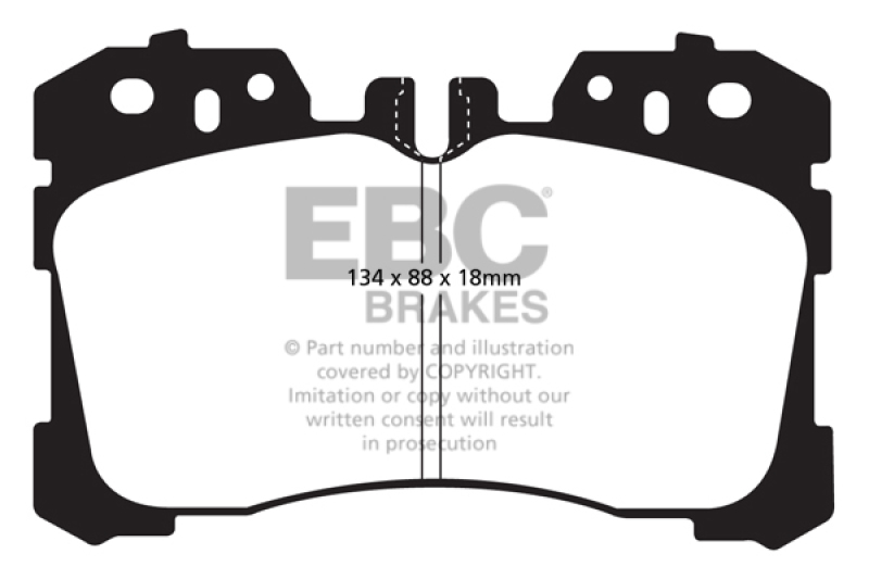 The EBC Yellowstuff front brake pads are engineered with an aramid fiber-based compound designed for exceptional performance in both street and track driving conditions. These brake pads deliver high braking effectiveness right from cold, eliminating the need for warm-up and providing strong stopping power during aggressive driving. Ideal for those seeking a versatile pad that excels in various environments, Yellowstuff is a proven choice among racing professionals and enthusiasts alike. Its durable construction ensures reliable performance in demanding scenarios, including competitive racing and spirited street driving. EBC’s Yellowstuff pads have been extensively tested in race series like the Swedish Camaro Cup and are popular among Mazda MX5 Miata racers in the UK, where they have demonstrated a rotor-friendly profile and consistent high friction levels. These pads are suitable for vehicles weighing up to 2000 lbs and producing up to 200 BHP, making them a robust option for a wide range of performance vehicles. Feedback from drivers participating in major events sanctioned by SCCA and NASA highlights the reliability and high-performance characteristics of Yellowstuff pads, with over 500 test drivers reporting positive results. Designed with vented construction, these pads help dissipate heat effectively, maintaining consistent braking performance even during prolonged high-speed stops. The dimensions are optimized for fitment on compatible Lexus models, ensuring a precise and secure installation. Whether for daily spirited driving or intense track sessions, EBC Yellowstuff brake pads provide a high-friction, fade-resistant solution that enhances your vehicle’s braking capabilities while maintaining rotor integrity.