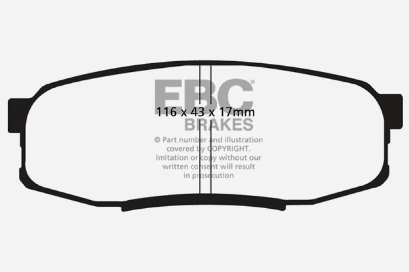 The EBC Yellowstuff Rear Brake Pads, part number DP41816R, are designed for high-performance street and track driving, offering exceptional braking power right from cold without the need for warm-up. Built with a high-tech aramid fiber-based compound, these pads excel in providing high friction and fade resistance during intense driving conditions. Whether you’re navigating city streets or pushing your vehicle on the racetrack, Yellowstuff pads deliver consistent and reliable stopping power, making them a versatile choice for enthusiasts and racers alike.