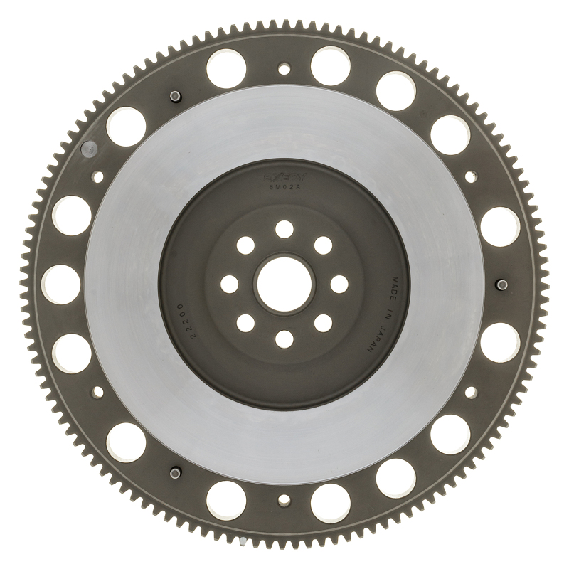 The Exedy TF02 lightweight steel billet flywheel is designed to enhance engine response and performance for sporty driving and racing applications. Made from solid one-piece billet chromoly steel, this flywheel offers a significant reduction in weight, weighing approximately 12.7 lbs, which helps improve acceleration and throttle response. Its high thermal capacity and optimized airflow design contribute to better cooling and clutch performance during demanding driving conditions. The integrated ring gear teeth eliminate the risk of separation that can occur with pressed-on aluminum ring gears, ensuring durability and reliable engagement at high RPMs. Certified by the SFI for safety and performance, the Exedy TF02 flywheel has been tested to withstand engine speeds up to 18,000 RPM, making it suitable for both street and racing use. It features an 8-bolt mounting pattern and is compatible with various Subaru BRZ and Scion FR-S models from 2013 through 2016, offering a direct fit for these vehicles. This product is ideal for enthusiasts seeking to improve their vehicle’s responsiveness while maintaining reliability and safety standards in high-performance driving scenarios.