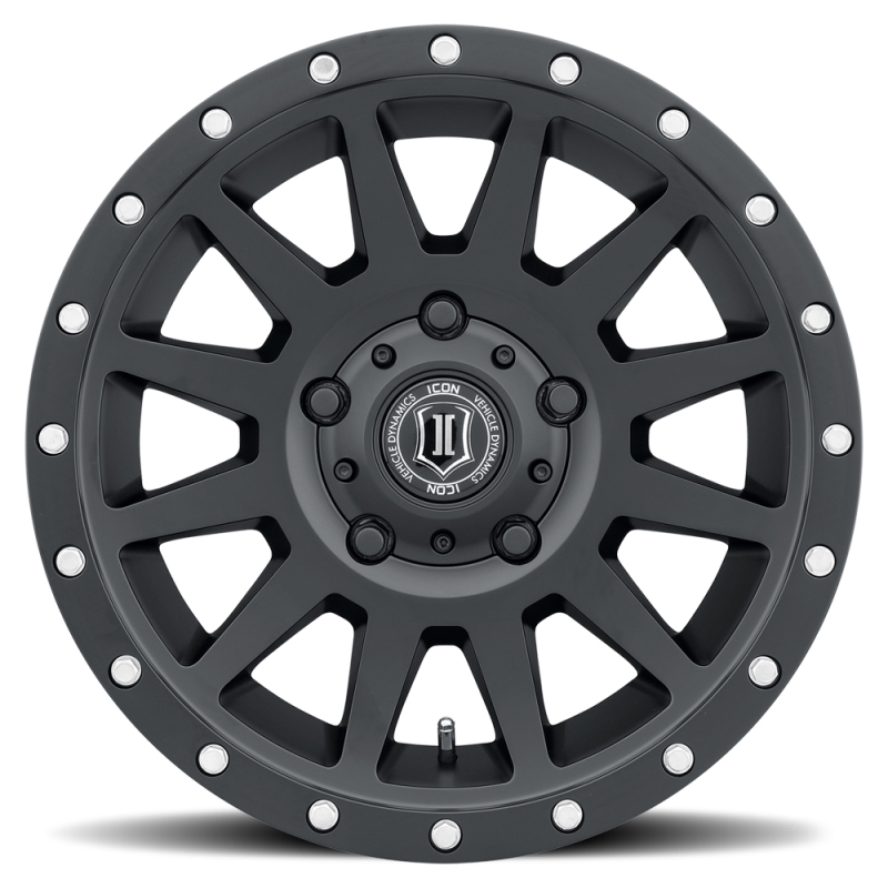 The ICON Compression Satin Black wheel, part number 2017855557SB, combines rugged durability with high-performance design tailored for off-road enthusiasts. Crafted from high-quality aluminum alloy, this 17-inch by 8.5-inch wheel offers a robust construction that supports a 2,750-pound load rating, making it one of the strongest options available. Its satin black finish adds a sleek, modern look to your vehicle while enhancing its overall aesthetic appeal. The wheel features a 5×150 bolt pattern, specifically designed to fit select Toyota models including the 2014 Toyota Tundra and various Toyota Land Cruiser years, ensuring a precise and secure fitment. The 25mm offset and 5.75-inch backspace are engineered to reduce scrub radius and maximize caliper clearance, thereby improving handling and steering response both on and off-road.