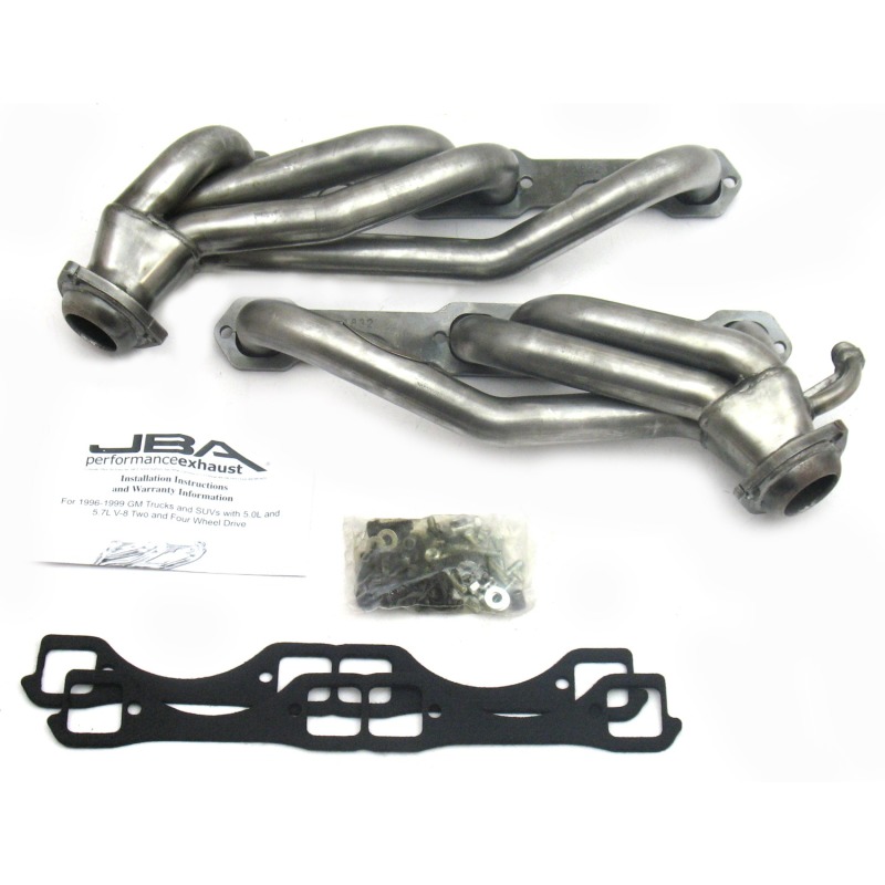 Upgrade your GM truck or SUV with the JBA Cat4Ward Header designed specifically for 1996 to 2000 models equipped with 5.0L or 5.7L Small Block Chevrolet engines. Constructed from durable 409 stainless steel, this header features mandrel-bent tubes and extra thick collector domes for enhanced durability and performance. The proprietary Firecone collector utilizes race-proven technology to maximize power and torque gains at the point of most drive, making it an ideal choice for towing, racing, or daily driving. The design includes factory-style emission connections, ensuring a seamless installation that maintains compliance with EPA standards and original vehicle emissions systems. Built with 3/8