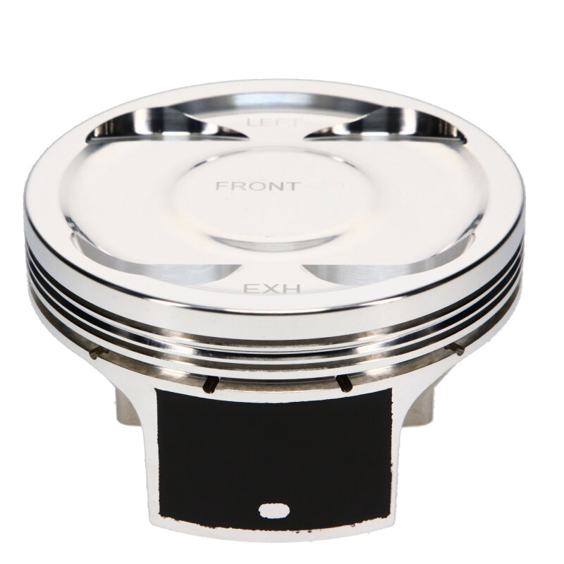JE Pistons’ proprietary Forged Side Relief (FSR) forging design reduces friction and power loss by minimizing skirt width and incorporating a shorter wrist pin, enhancing efficiency and weight savings. Depending on your application, the pistons feature an accumulator groove that helps reduce combustion pressure, decreasing ring flutter and improving sealing for consistent power output. The skirt coating further reduces friction and wear on piston skirts and cylinder walls while also decreasing operating noise, contributing to smoother engine operation.