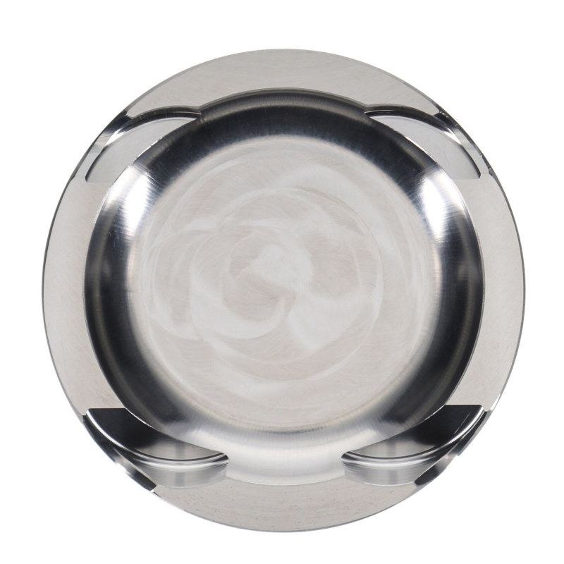 JE Pistons’ proprietary Forged Side Relief (FSR) forging design minimizes friction and power loss by reducing skirt width and saving weight with a shorter wrist pin, leading to improved efficiency and responsiveness. The pistons feature an accumulator groove (application-dependent), which helps reduce pressure from combustion gases, decreasing ring flutter and enhancing ring seal for consistent power delivery. A skirt coating (application-dependent) further reduces friction and wear on piston skirts and cylinder walls, while also lowering operating noise, contributing to smoother engine operation.