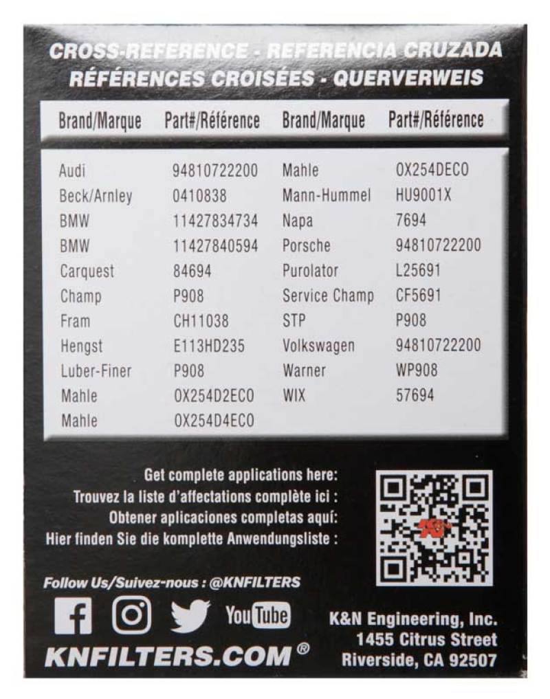 The K&N HP-7032 Performance Oil Filter is engineered to meet the demands of high-performance vehicles, including BMW M5 and M6 models from 2006 to 2011, as well as Porsche Cayenne 4.8L and 911 models from 2010 to 2015. Crafted with precision, this filter ensures maximum filtration efficiency while maintaining high oil flow rates essential for demanding driving conditions. Its robust construction helps trap harmful contaminants, providing cleaner oil circulation to protect your engine and extend its lifespan. Designed for both professional racers and everyday enthusiasts, the HP-7032 is an ideal choice for those using high-end synthetic motor oils, delivering reliable performance and durability. Manufactured under strict engineering standards, this filter is backed by a limited warranty against defects in materials and workmanship when used with recommended service intervals. Whether you’re upgrading your vehicle’s filtration system or maintaining peak engine performance, the K&N HP-7032 is built to meet and exceed your expectations.