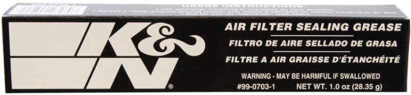 K&N Engineering Sealing Grease Part 99-0703-1 is specifically formulated to provide an airtight seal around sealing surfaces on all types of air filter elements. This high-performance grease is designed to resist high temperatures, ensuring that the seal remains intact even under severe operating conditions. Its heat-resistant properties prevent melting or running off, making it suitable for demanding environments where maintaining an effective seal is critical for engine performance and protection. This sealing grease is ideal for use in a variety of automotive applications where a reliable seal is necessary to prevent dirt, debris, and unfiltered air from bypassing the filter element. It is not recommended for clamp-on filter elements, ensuring optimal performance and compatibility with specific filter types. The product comes in a convenient 1-ounce tube, making it easy to apply precisely where needed and store for future use, ensuring a consistent airtight seal during filter maintenance or replacement.