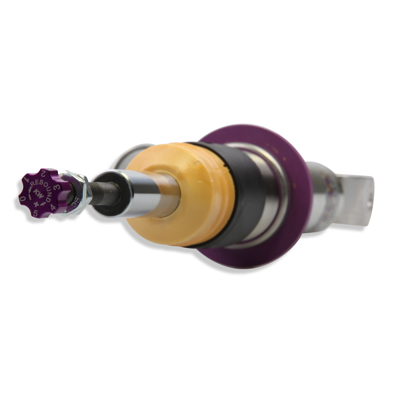 The KW V3 system features independently adjustable rebound and compression damping stages, allowing for a tailored setup to match your driving style or vehicle modifications. The patented TVR-A (Twin Valve Rebound) technology enables fine-tuning of rebound damping at low speeds, enhancing steering response and stability. Simultaneously, the TVC-A (Twin Valve Compression) technology provides adjustable compression damping, optimizing grip and handling during high piston speeds or aggressive maneuvers. This comprehensive adjustment capability ensures optimal tire contact and minimizes squat, thereby maximizing performance on both street and track.