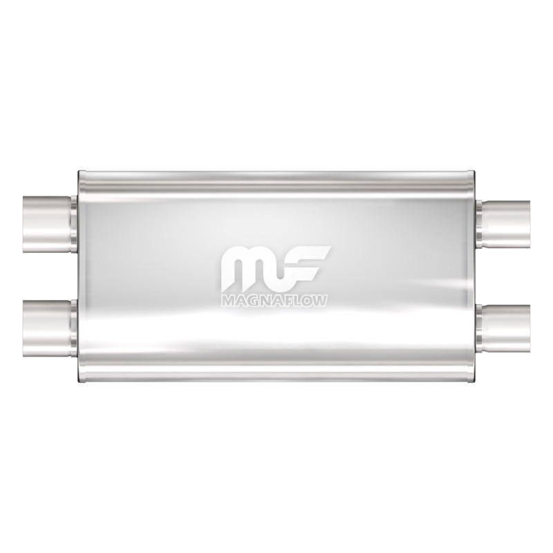 Enhance your vehicle’s exhaust system with the MagnaFlow 12569 oval-shaped performance muffler, engineered for optimal sound and performance. Featuring a 5 x 11-inch stainless steel body with a satin finish, this muffler adds a sleek aesthetic while providing durable, corrosion-resistant construction. The free-flowing straight-through perforated core wrapped in stainless steel mesh and acoustic fiber fill ensures an improved exhaust flow, resulting in a deeper, smoother sound that enhances your driving experience. Its reversible, universal 3-inch inlet and 2.5-inch outlet design offers versatile installation options, allowing you to configure the exhaust setup to suit your vehicle’s needs. Professional installation is recommended to ensure proper fitment and performance.