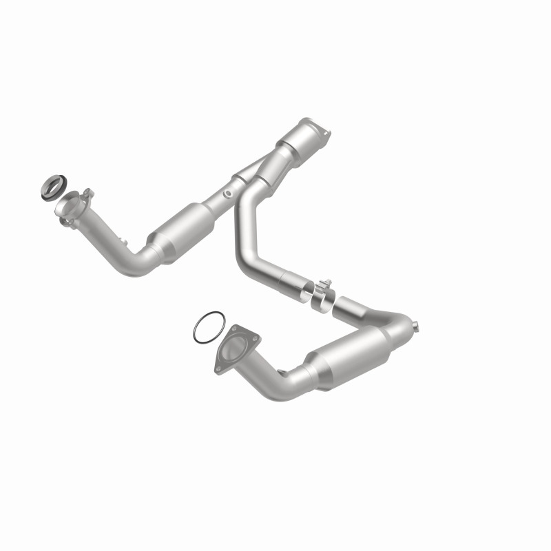 Ensure your vehicle remains emissions compliant with the MagnaFlow California Grade CARB Compliant Direct-Fit Catalytic Converter Part 5451650. Crafted with high-quality stainless steel, this converter features mandrel-bent tubing that maintains a smooth exhaust flow, which helps optimize fuel economy and engine performance. The precision-engineered design includes a spun body and laser fusion welds, significantly reducing the risk of leaks and ensuring durability over time. This converter is designed to fit directly onto specific 2007-2009 Chevrolet Trailblazer, 2007 Buick Rainier, and 2007 GMC Envoy models, making installation straightforward without cutting or welding. Included gaskets and hardware facilitate a secure seal, preventing exhaust leaks and ensuring a proper fit. The product has undergone rigorous testing to meet or exceed California Air Resource Board standards, making it legal for use in California and other CARB-restricted states. Its low-mass, compact design allows for better thermal efficiency, contributing to overall vehicle performance and longevity. Engineered with a durable MIG weld in 16-gauge stainless steel, this catalytic converter is built to withstand harsh conditions while maintaining compliance and optimal exhaust flow. Whether replacing an existing unit or upgrading your emissions system, this converter offers a reliable solution that combines OEM-like flow characteristics with the peace of mind of CARB approval. The included clamps and gaskets streamline installation, saving time and reducing the need to reuse worn factory parts. Trust MagnaFlow for quality, compliance, and performance in your vehicle’s emissions system.
