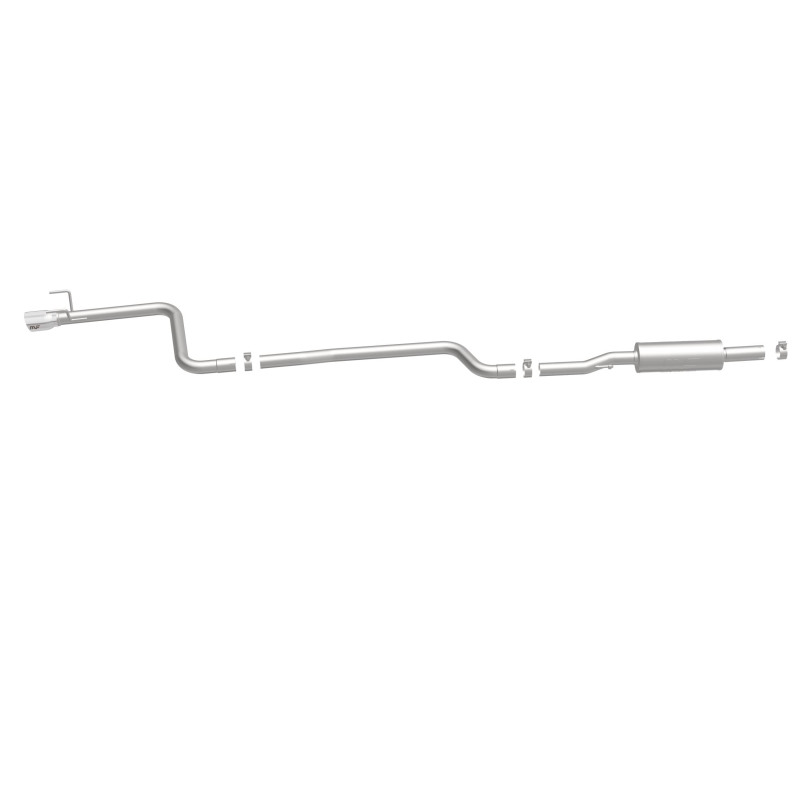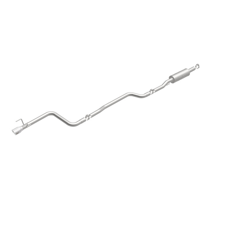 Enhance your 2016-2019 Chevrolet Cruze with the MagnaFlow Street Series Cat-Back Performance Exhaust System, part number 19269. Designed specifically for the 1.4L engine models, this exhaust system delivers a resonant, powerful engine tone while improving overall performance. Built with 2.5-inch mandrel-bent main piping and straight-through mufflers, it ensures optimal exhaust flow for increased horsepower and torque. The single driver-side rear exit features 3.5-inch polished, welded double-wall angle cut tips that add a sporty finish to your vehicle’s appearance. This direct-fit system replaces the stock exhaust components from near the catalytic converter back, providing an easy installation process thanks to extensive 3D scanning and CNC precision manufacturing techniques. The MagnaFlow exhaust not only boosts your vehicle’s sound profile but also maintains moderate exterior and mild interior noise levels, making it suitable for daily driving without excessive noise. Constructed from durable, corrosion-resistant stainless steel, this system is engineered for longevity and consistent performance. Backed by a 1-year limited finish warranty and a limited lifetime construction warranty, the MagnaFlow Street Series exhaust offers a reliable upgrade for your Cruze. Whether you’re seeking improved sound, enhanced performance, or a more aggressive look, this exhaust system is designed to meet those needs while fitting seamlessly onto your vehicle, giving it a distinctive edge over stock options.