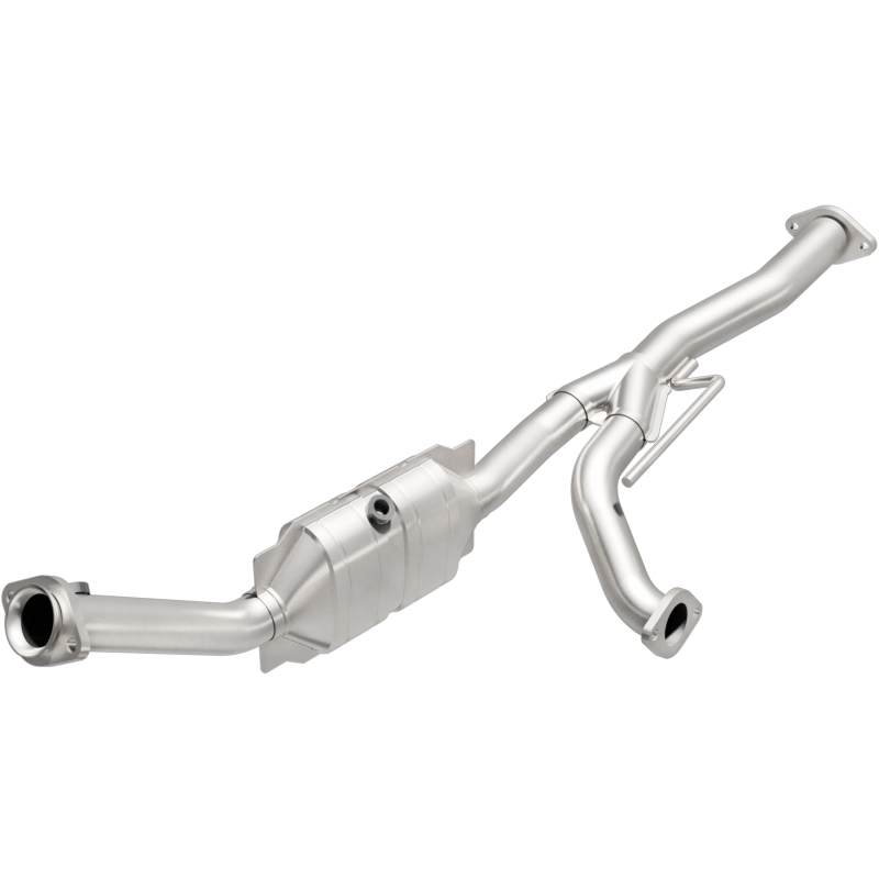 The MagnaFlow OEM Grade Direct-Fit Catalytic Converter Part Number 49678 is designed to provide reliable, EPA-compliant emissions control for your 2007-2011 Ford Ranger and 2007-2010 Mazda B4000. Crafted with mandrel-bent tubing, this converter ensures minimal flow restrictions, promoting optimal engine performance and fuel efficiency. Its stainless steel construction, including corrosion-resistant 410 stainless steel hangers and 16-gauge 409 stainless steel tubing, offers exceptional durability and resistance to rust and corrosion. The precision-stamped collector enhances exhaust flow, contributing to improved engine efficiency and compliance with federal emissions standards. This direct-fit converter is engineered using advanced 3D scanning for precise OE-like fit and function, simplifying installation without the need for cutting or welding, and it comes with essential gaskets and hardware for a straightforward replacement. Designed to meet or exceed EPA regulations, it provides peace of mind for federal emissions compliance while maintaining factory-like performance. Please note that this product is not legal for sale or installation in California, Colorado, or New York. Reliable and durable, the MagnaFlow 49678 is a trusted choice for vehicle owners seeking a high-quality, OEM-matching catalytic converter that ensures your vehicle remains compliant with emissions standards while delivering optimal exhaust flow and engine performance.