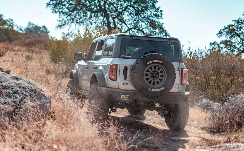 Enhance your 2021-2023 Ford Bronco with the MagnaFlow Overland Series Cat-Back Exhaust system #19559, engineered specifically to boost off-road performance and ground clearance. This direct-fit, stainless steel exhaust kit is designed with precision, utilizing 3-inch main piping that leads to a straight-through muffler and terminates in a high-clearance 2.5-inch side exit. The design improves rear departure angle, facilitating better rock crawling and trail maneuverability. Crafted through detailed 3D vehicle scans by MagnaFlow’s Tech Center, this system ensures a perfect fit without the need for extensive modifications. Its closer mounting to the undercarriage not only enhances ground clearance but also contributes to a more aggressive stance, making it ideal for off-road enthusiasts seeking to push their Bronco beyond standard limits. The system’s deep, signature exhaust tone is achieved with carefully tuned components, providing a satisfying sound profile at mild interior and moderate exterior levels. This allows you to enjoy your engine’s character without overwhelming noise, maintaining a balance between performance and comfort. The MagnaFlow exhaust features a tunable No Drone Technology (NDT) quarter-wave resonator, which actively suppresses unwanted cabin and exterior drone noises during highway cruising, enhancing your driving experience and situational awareness during remote adventures. Built with durable, precision CNC robotic manufacturing techniques and high-quality stainless steel, this system guarantees longevity and resistance to harsh off-road conditions. Backed by MagnaFlow’s limited lifetime warranty, the Overland Series exhaust offers reliability and performance for your Bronco’s ongoing adventures.