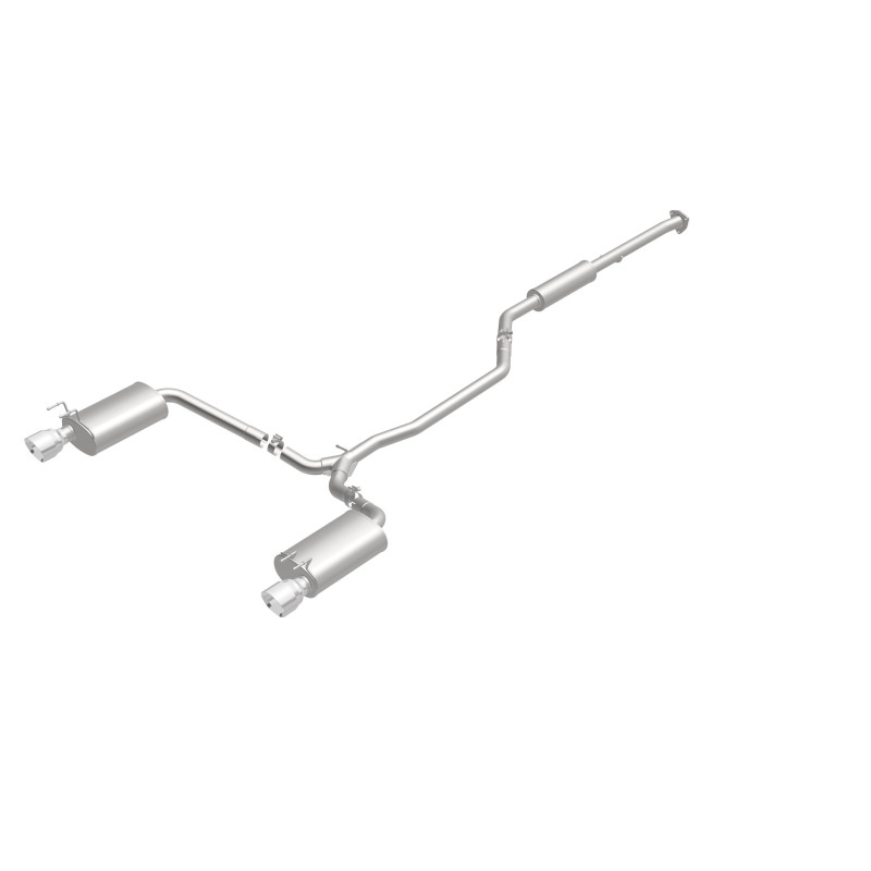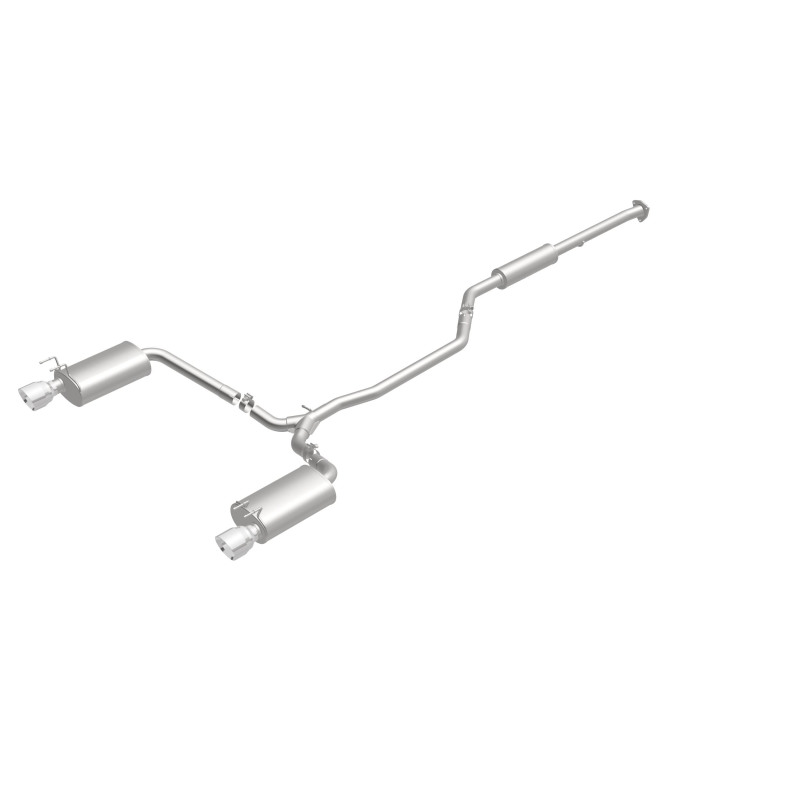 Enhance your 2013-2017 Honda Accord with the MagnaFlow Street Series Cat-Back Exhaust System, designed specifically for the 3.5L V6 engine. Crafted from durable, corrosion-resistant stainless steel, this system features mandrel-bent 2.25-inch main piping that ensures optimal exhaust flow and improved engine performance. The three straight-through mufflers culminate in a dual split rear exit with polished 4.5-inch angle-cut welded tips, delivering a sporty, resonant engine tone that enhances your driving experience. This exhaust system not only boosts horsepower and torque but also adds a bold aesthetic with its polished tips, giving your Accord a more aggressive appearance.