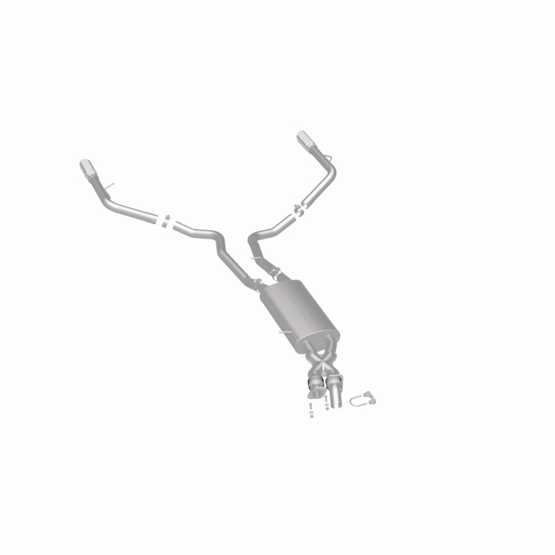 Upgrade your 2010-2013 Land Rover Range Rover Sport with the MagnaFlow Touring Series Cat-Back Performance Exhaust System, part number 15579. Designed specifically for the 5.0L engine, this exhaust system delivers a resonant and powerful exhaust note that enhances your driving experience without overwhelming the interior or exterior sound levels. Constructed from durable 409 stainless steel, it offers corrosion resistance and long-lasting performance, ensuring your vehicle maintains peak output over miles of use. The mandrel-bent 2.5-inch main piping promotes optimal airflow, contributing to increased horsepower and torque while maintaining a sleek, polished appearance with welded-on double wall angle cut tips at the dual split rear exit. This system replaces stock exhaust components from the catalytic converter back, providing a direct-fit, hassle-free installation that aligns precisely with your vehicle’s specifications thanks to extensive 3D scans and CNC robotic manufacturing techniques. The result is a perfect fit that enhances both performance and aesthetics, backed by MagnaFlow’s limited lifetime construction warranty.