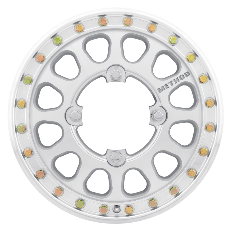 The wheel features an iconic 12-window design with debossed Method logos, combining aesthetic appeal with functional durability. Its 15-inch diameter and 5-inch width make it suitable for a variety of offroad tires, while the 5+0 offset enhances stability and steering response. The included Grade 8 zinc-plated beadlock hardware kit simplifies installation and ensures corrosion resistance in harsh environments. With a load rating of 1,600 pounds, this wheel is built to handle the demands of powersports applications, providing the strength and reliability needed for challenging terrains.
