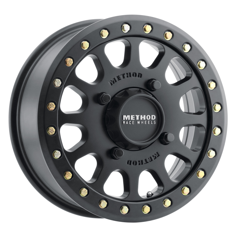 The Method MR401 UTV Beadlock Wheels are engineered for serious offroad enthusiasts seeking durability and performance. Crafted from solid A356 aluminum, these wheels undergo T6 heat treatment and feature a reinforced inner lip to ensure exceptional strength and longevity in demanding terrains. The iconic 12-window design, adorned with debossed Method logos, combines style with function, making these wheels a standout choice for your offroad vehicle. The protected Schrader valve, placed between wheel spokes, offers easy access and maintenance for optimal performance during rugged adventures. Included with the wheels is a grade 8 zinc-plated beadlock hardware kit, providing secure tire mounting and enhanced durability. The forged 6061 aluminum V.1 beadlock ring adds to the structural integrity, ensuring the wheels withstand the rigors of offroad driving. These wheels are designed to fit a 15-inch diameter with a 6-inch width, featuring a 5+1/3 inch offset and a 4×136 bolt pattern, making them compatible with a range of UTV models. With their matte black finish, they add a sleek, aggressive look to any offroad setup while offering reliable performance. Whether you’re navigating rocky trails or muddy paths, the Method MR401 wheels are built to deliver maximum strength, durability, and style for your powersports vehicle.