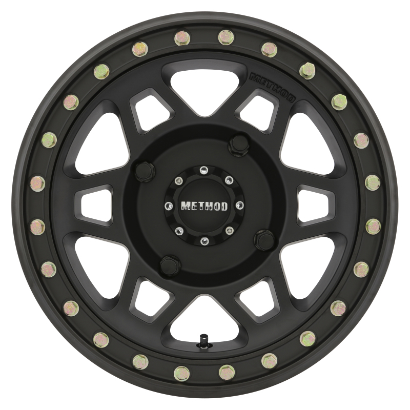 The wheel is equipped with a forged 6061 aluminum V.2 beadlock ring finished in matte black e-coating, providing excellent corrosion resistance and a sleek appearance. Its tough 6-window design is accentuated with a debossed Method logo, offering a distinctive look that stands out on any UTV. The included Grade 8 zinc-plated beadlock hardware ensures secure assembly and long-lasting performance, even under strenuous conditions.