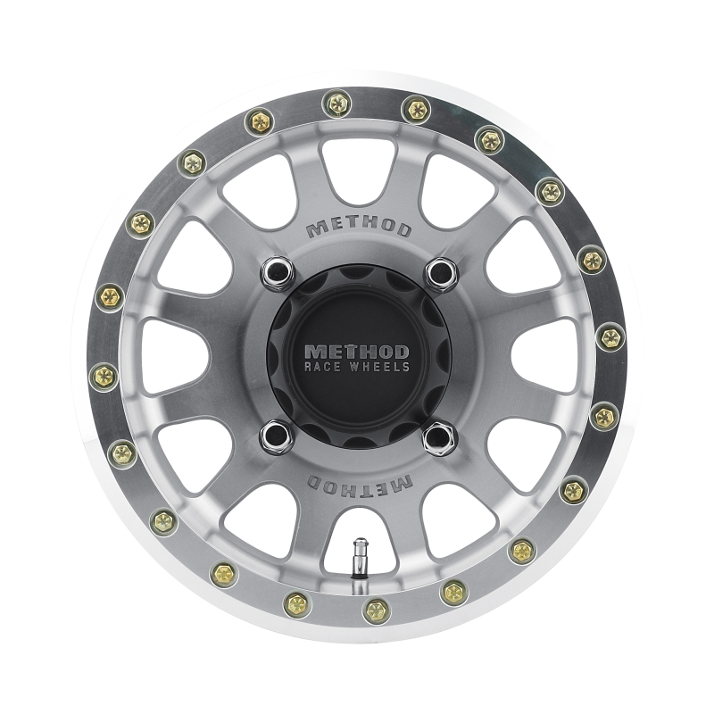 The Method Wheels MR401 UTV Beadlock Wheel is designed for serious off-road enthusiasts seeking durability and performance. Constructed from solid A356 aluminum, this wheel features a T6 heat treatment that enhances its strength and resistance to harsh off-road conditions. The reinforced inner lip provides additional durability, ensuring reliable performance in demanding environments. The iconic 12-window design, embossed with Method logos, offers a distinctive look while maintaining structural integrity. This wheel includes a forged 6061 aluminum V.1 beadlock ring and a grade 8 zinc-plated beadlock hardware kit for secure tire mounting. The protected Schrader valve is conveniently positioned between the wheel spokes for easy access and reduced risk of damage during off-road adventures. Designed for a 14-inch diameter and 7-inch width, it offers a 5+2/38mm offset that balances stability and handling. The 4×136 bolt pattern makes it compatible with a range of UTV models, providing a versatile upgrade for your powersports vehicle. With a raw finish, this wheel is ready for customization or to be used as-is for a rugged, no-nonsense appearance. Easy to install and maintain, the Method MR401 wheel combines innovative design with robust construction, making it a top choice for off-road enthusiasts who demand reliable performance and distinctive style.