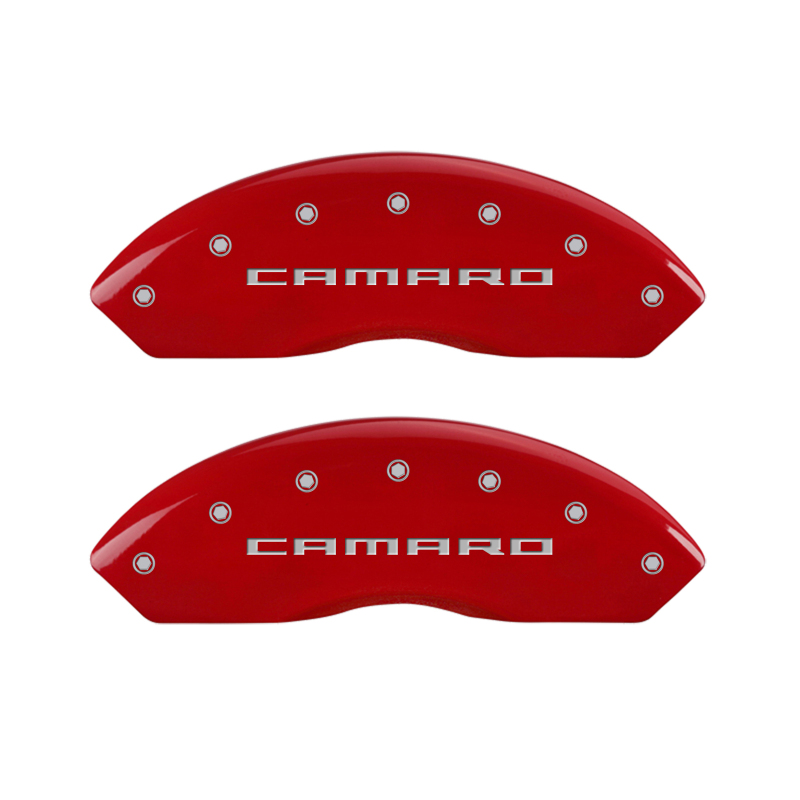Enhance the appearance of your Chevrolet Camaro with the MGP 14240SCA5RD caliper covers, designed specifically for models from 2016 through 2024. These high-quality aluminum covers are engineered to conceal unsightly brake calipers, providing a sleek and polished look that elevates your vehicle’s curb appeal. The set includes four engraved caliper covers with a vibrant red powder coat finish and contrasting silver characters, creating a bold statement on your vehicle’s wheels. Made with aerospace-grade aluminum, these covers are built for durability and long-lasting performance, ensuring they withstand the rigors of daily driving. The package also includes stainless steel fastening clips for a secure fit, making installation quick and straightforward, typically taking around an hour. These caliper covers are tested for safety and fitment, and they are licensed by major manufacturers, giving you confidence in their reliability and quality. Installing these covers results in less brake dust accumulation, keeping your wheels cleaner for longer, while their striking color options can complement your vehicle’s style. Whether you’re looking to enhance aesthetics or protect your brake components, the MGP caliper covers offer a practical and attractive upgrade to your Camaro’s wheel setup.