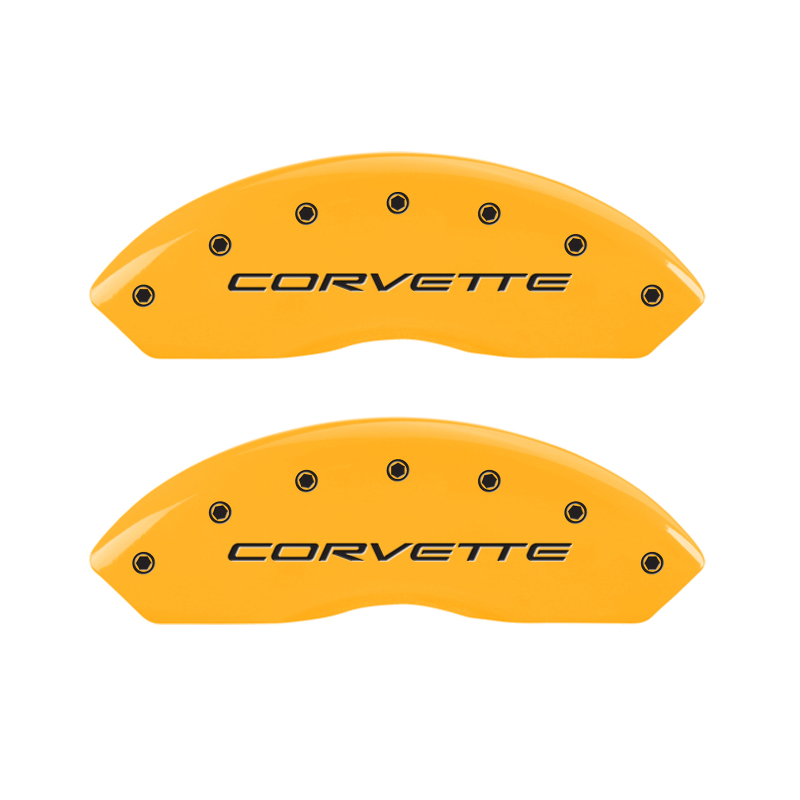 Upgrade your Chevrolet Corvette with the MGP Caliper Covers designed specifically for models from 1997 to 2004. These high-quality aluminum covers are engineered to conceal unsightly brake calipers, enhancing the aesthetic appeal of your wheels. Finished with a durable yellow powder coat and black engraved lettering, they add a sporty and customized look to your vehicle. The set includes four caliper covers along with stainless steel fastening clips, making installation straightforward and quick, typically completed within about an hour. Crafted from aerospace-grade aluminum, these covers are built to withstand the rigors of daily driving while providing an attractive upgrade to your Corvette’s appearance. They are tested for safety, fitment, and durability, ensuring reliable performance and a long-lasting finish. Additionally, these caliper covers help reduce brake dust, resulting in cleaner wheels and a more polished look after each drive. Perfect for enthusiasts seeking both style and functionality, the MGP Caliper Covers are a practical upgrade that enhances curbside appeal without compromising safety or performance.