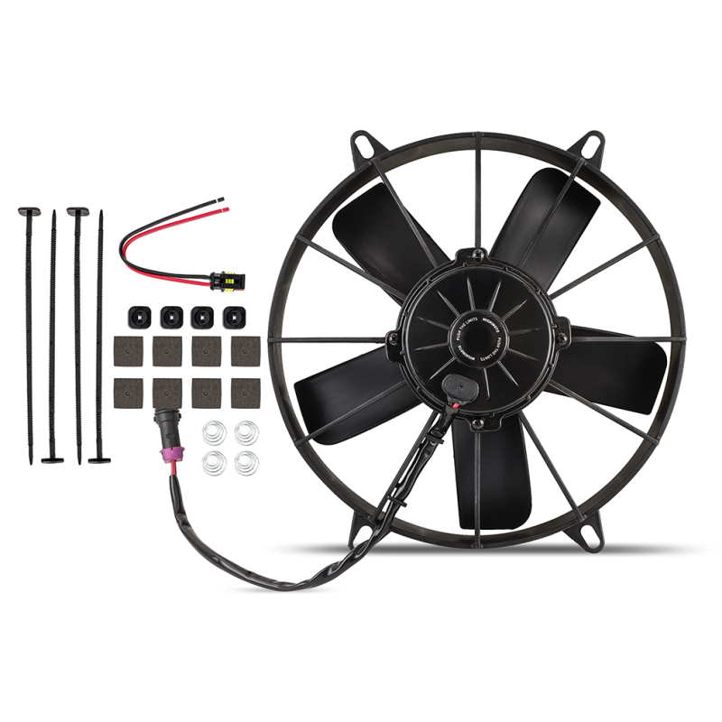 Enhance your vehicle’s cooling performance with the Mishimoto 11 Inch Race Line High-Flow Electric Fan. Designed for demanding applications, this fan delivers a powerful 1700 CFM airflow, ensuring your engine stays cool even under extreme conditions. The compact housing diameter of 12 inches and an overall thickness of just 3.7 inches allow for flexible installation between your radiator and engine bay, making it ideal for tight spaces. Its durable construction is built to withstand heavy-duty use, providing reliable cooling for the most powerful engines. The fan’s reversible design offers versatility, allowing you to mount it in front of or behind the radiator based on your setup needs. For seamless universal installation, pair it with the Mishimoto Electric Fan Mounting Kit, which simplifies mounting in various vehicle configurations. Whether upgrading your high-performance car or replacing an existing fan, this model offers optimal airflow and durability to keep your engine running efficiently. The fan’s high-flow capabilities help prevent overheating during intense driving conditions, improving overall vehicle reliability and performance. Its slim profile and robust build make it suitable for a wide range of automotive applications, ensuring maximum airflow without sacrificing space or clearance. Trust Mishimoto’s reputation for quality with this high-performance electric fan, engineered to deliver maximum cooling efficiency for your vehicle.