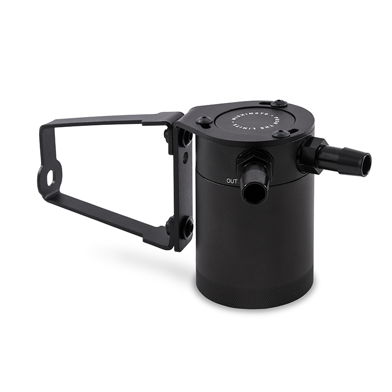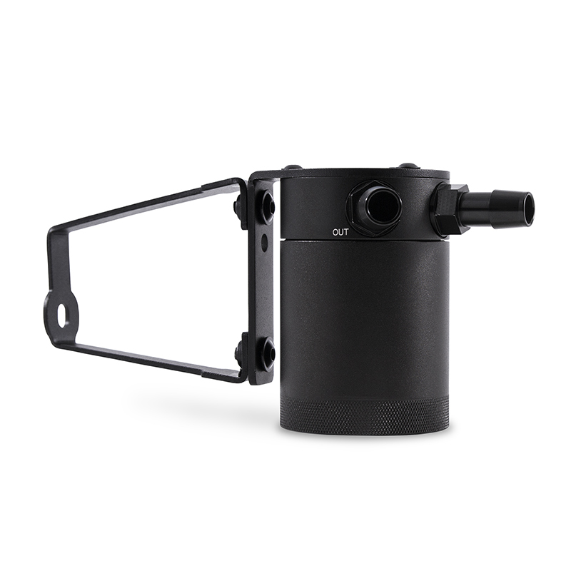 - Application-specific bracket mounts the catch can in an easily accessible location within the engine bay