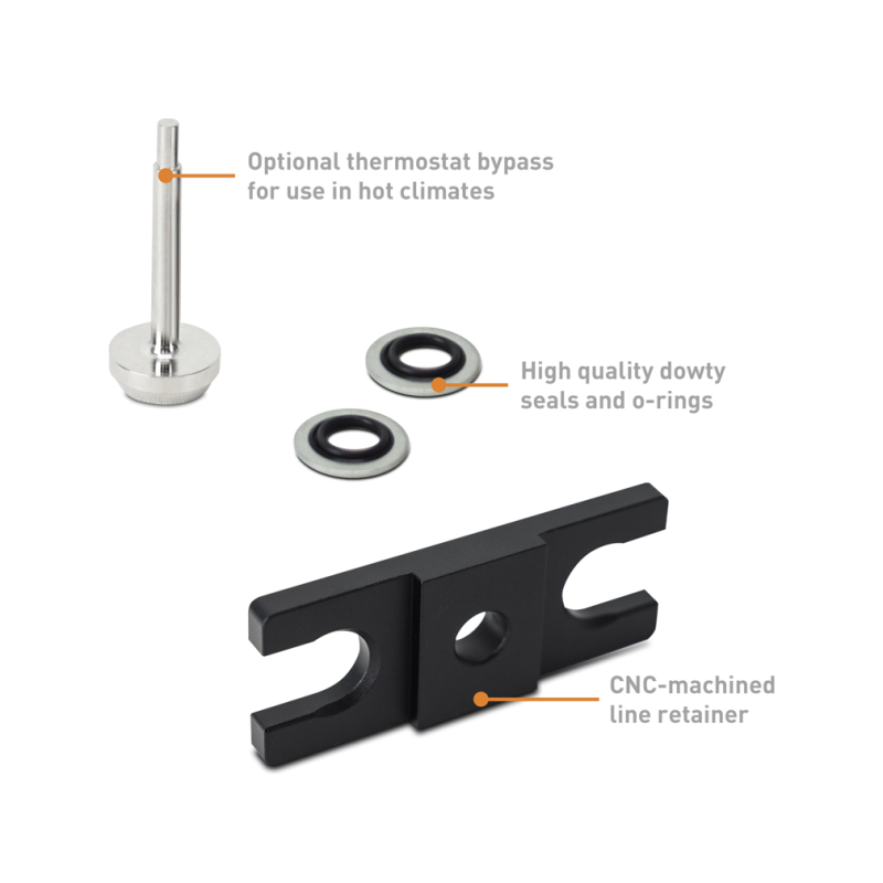 - s a full-flow bypass option for constant cooling in hot climates, easily swappable with a wrench