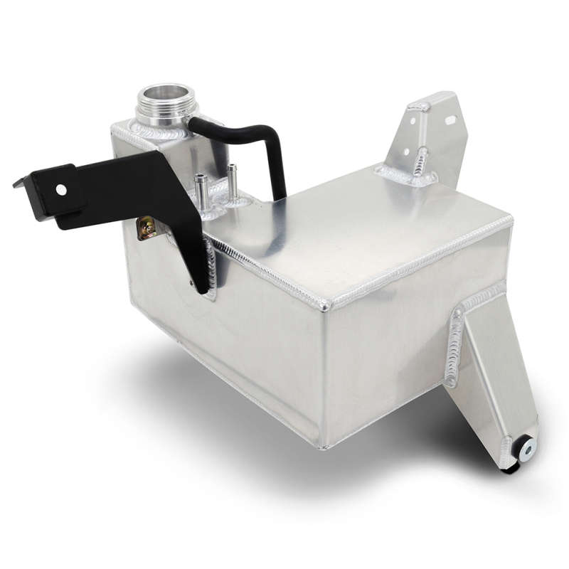 The Mishimoto aluminum expansion tank designed specifically for 2019 and newer Ram 6.7L Cummins trucks offers a durable upgrade over the factory plastic tank. Constructed from TIG-welded aluminum, this expansion tank withstands high temperatures and heavy-duty use without cracking, discoloration, or internal degradation that can occur with plastic over time. Internal baffles help maintain coolant stability during demanding driving conditions, reducing the risk of air pockets and coolant starvation that can compromise engine cooling performance. This ensures your engine runs efficiently and reliably, even under tough operating conditions. The tank includes an OEM-quality level sensor, allowing the vehicle’s low coolant warning system to function seamlessly, preserving safety features without modification. Installation is straightforward as the Mishimoto tank fits directly in place of the factory unit without requiring draining the entire cooling system, and no special tools are necessary. All necessary provisions for factory sensors are included, making the upgrade clean and hassle-free. Beyond performance and durability, this expansion tank enhances the engine bay’s appearance with a sleek, natural finish that can be customized with powder coating, anodizing, or hydro-dipping for a personalized look. Designed for longevity and aesthetic appeal, the Mishimoto 2019+ Ram 6.7L Cummins expansion tank is backed by the Mishimoto lifetime warranty, providing confidence in its quality and durability. Whether replacing an aging component or upgrading for performance, this aluminum tank is an excellent choice for serious Ram owners looking for a reliable, long-lasting solution that maintains your vehicle’s cooling system integrity.
