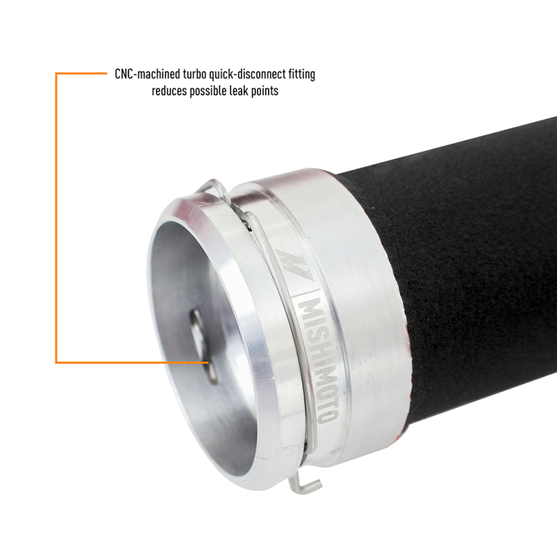 - High-flow pipes matched to the intercooler core for minimal boost loss