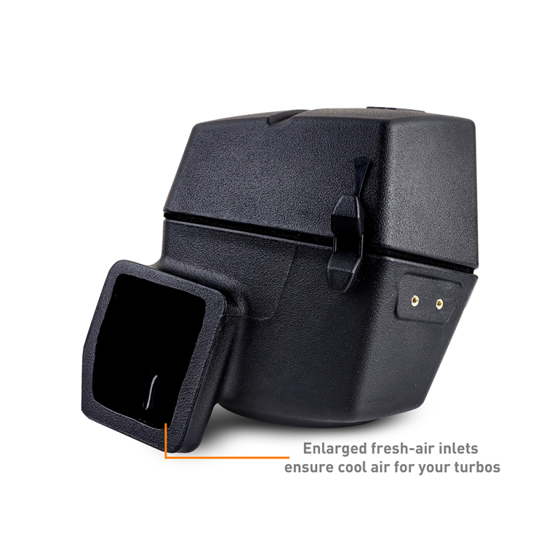 - Enlarged fresh air ducts ensure cool air delivery to turbos for maximum performance