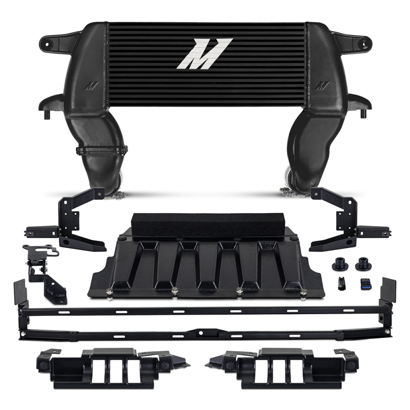 Designed specifically for the 2021 and newer Ford Bronco models, the Mishimoto High Mount Intercooler Kit enhances your vehicle’s performance by delivering cooler, denser air to your engine’s turbochargers. This high-mount intercooler replaces the factory unit, relocating to the upper grille area to optimize airflow, improve entry and exit angles, and increase clearance for off-road accessories such as winches and lights. Constructed with a 3.1-inch-thick core, precision TIG-welded cast aluminum end tanks, and a robust design, this intercooler offers superior durability against heat, pressure, and debris encountered on trails and daily driving alike. Its upgraded core volume—49% larger—and increased external fin surface area—93% more—work together to significantly reduce outlet temperatures, with a decrease of up to 21°F for the 2.3L EcoBoost and 15.5°F for the 2.7L EcoBoost models. These thermal improvements translate into tangible performance gains, including up to 4.5 horsepower and 10.8 lb-ft of torque for the 2.3L engine, and 8.0 horsepower and 10.2 lb-ft torque for the 2.7L engine. Extensive trail simulation testing demonstrates the intercooler’s ability to maintain outlet temperatures 20°F cooler than stock after multiple dyno runs, ensuring consistent power delivery under demanding conditions. The kit preserves essential vehicle functions such as adaptive cruise control and 360-degree cameras, thanks to carefully designed relocation brackets and ducting. Backed by Mishimoto’s lifetime warranty, this intercooler kit is a reliable upgrade for off-road enthusiasts seeking enhanced performance and durability in their Bronco. Its sleek black finish complements the vehicle’s rugged aesthetic while providing corrosion resistance and long-term protection.