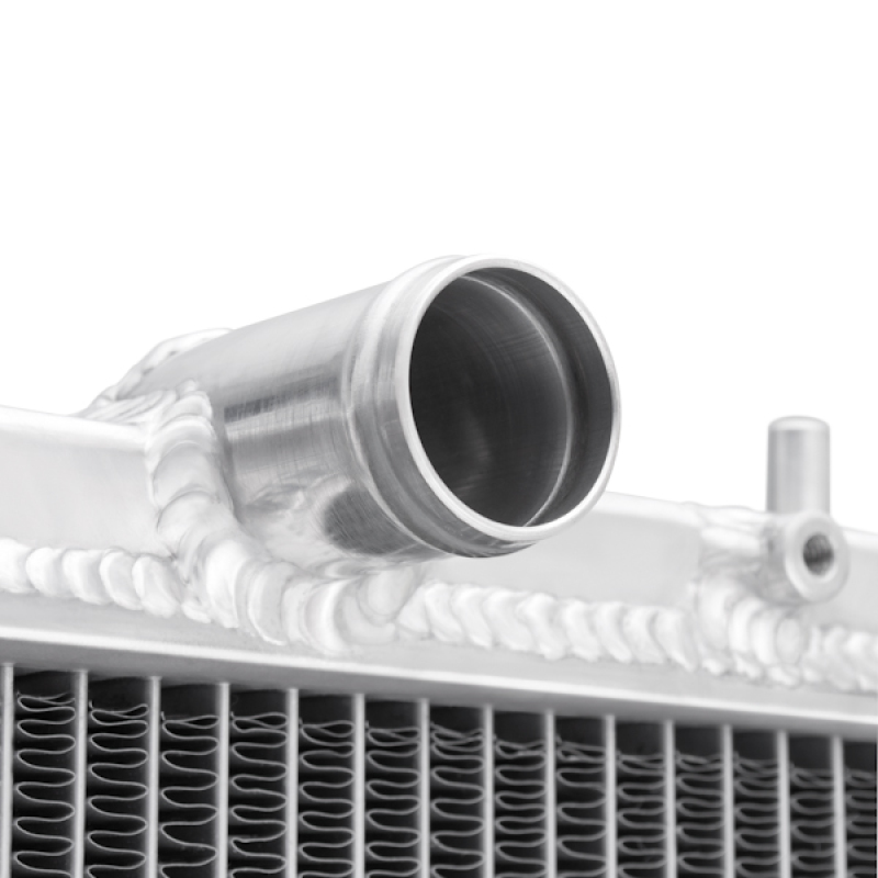 The two-row, 1.42-inch thick core enhances thermal transfer, helping your engine run cooler and more efficiently. Proper cooling is vital for maintaining engine health, especially during high-performance or extended driving sessions. The Mishimoto radiator’s polished end tanks add a sleek look while providing consistent, long-lasting performance.