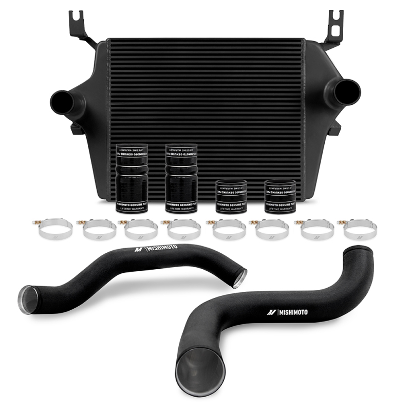Enhance the performance and reliability of your 1999-2003 Ford F-Series 7.3L Powerstroke with the Mishimoto Performance Intercooler Kit. Designed to improve airflow, this comprehensive kit helps significantly lower air charge temperatures, reduce exhaust gas temperatures (EGTs), and support higher power levels under demanding conditions. The kit includes mandrel-bent aluminum intercooler piping, available with polished or wrinkle-black powder-coated finishes, ensuring minimal restriction and optimal airflow. Mishimoto silicone boots with DuraCore technology and sturdy T-bolt clamps guarantee a secure, leak-free connection that resists heat, pressure, fuel, and oil exposure, extending their lifespan and maintaining consistent performance. The intercooler itself features a large core volume with a robust bar-and-plate design, cast aluminum end tanks, and an efficient cooling setup that delivers cool, dense air to your engine, boosting overall efficiency and power. This upgrade is ideal for high-horsepower applications and harsh operating environments, with the DuraCore bootkit design enabling installation of a performance-level intercooler typically reserved for larger engines. The kit comes complete with all necessary hardware for a straightforward installation, ensuring a secure fit and optimal operation. With options for a black or silver core, this intercooler kit is built to last and backed by Mishimoto’s lifetime warranty, providing peace of mind for your vehicle upgrade. Compatible with a variety of Ford F-250 Super Duty models from 2000 through 2003, this kit is a vital upgrade for enthusiasts seeking to maximize their truck’s performance and durability.