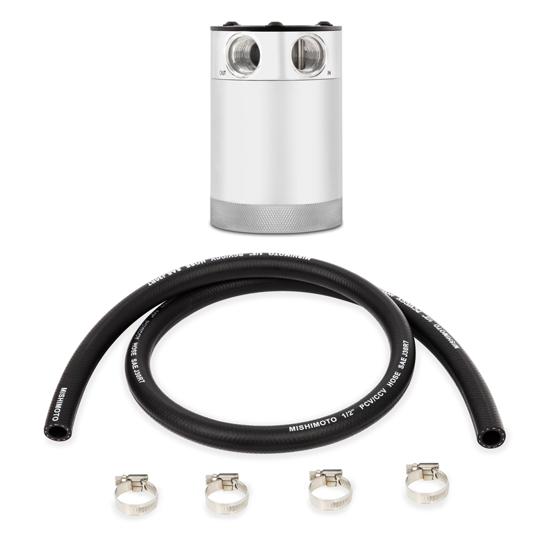 The Mishimoto Compact Baffled Oil Catch Can is engineered to effectively separate oil particles from PCV and CCV air systems, preventing contamination of your intake components. Crafted from 100-percent billet 6061 aluminum, this can features a sleek polished finish that combines durability with a premium look. Its internal baffling and air diverter turbulates airflow, allowing oil vapors to condense and sink to the bottom, ensuring cleaner air passes through the 50-micron bronze filter. This design minimizes oil blow-by and helps protect critical engine parts such as the intercooler and intake system from oil buildup.